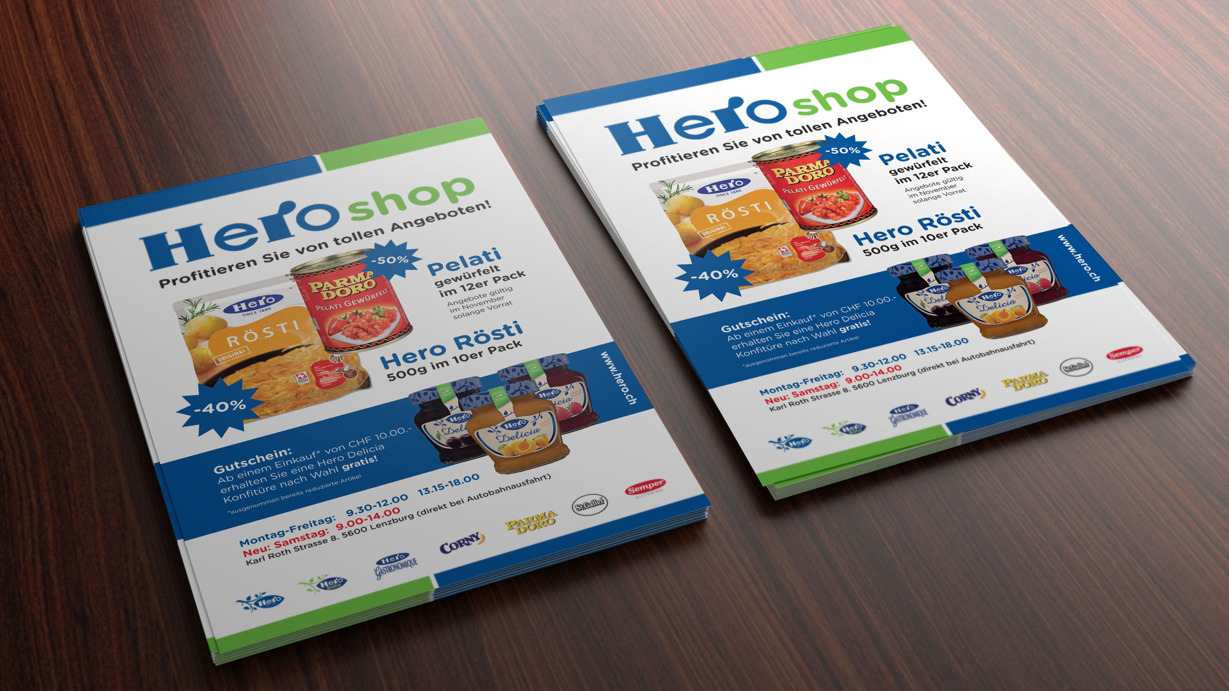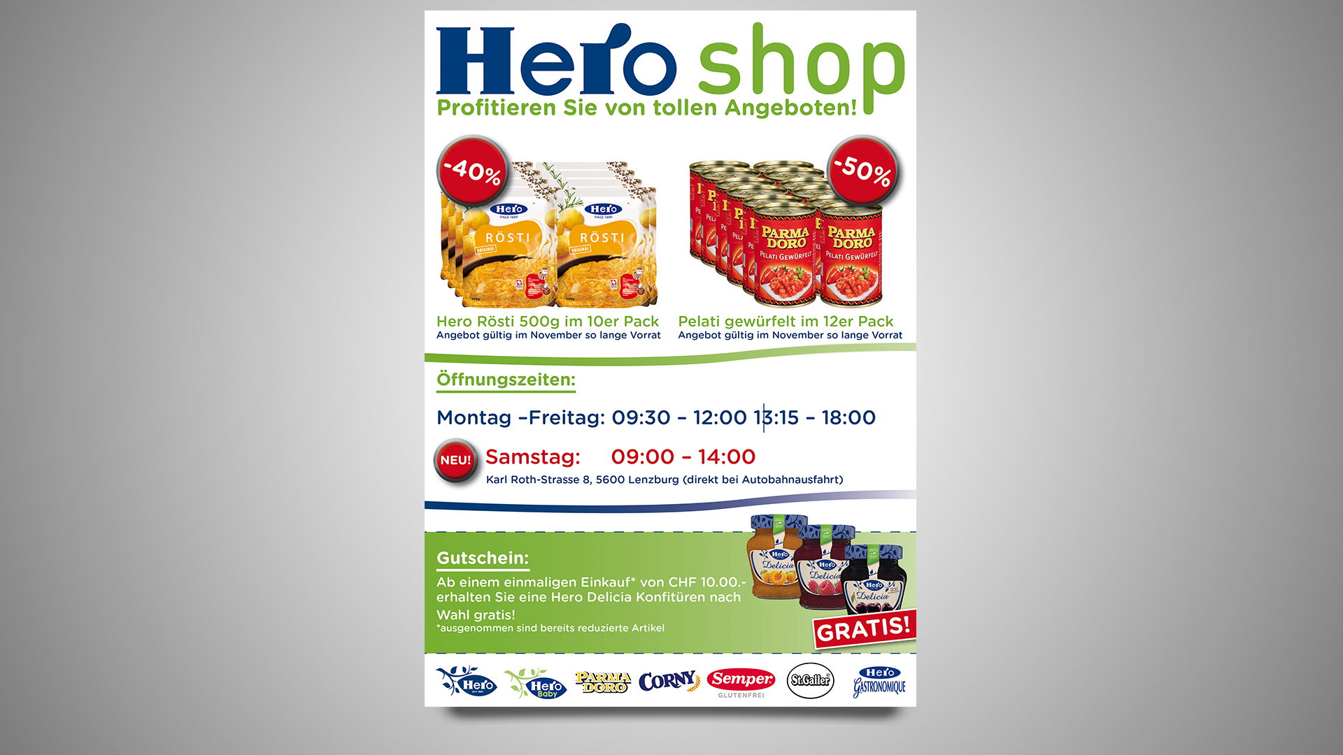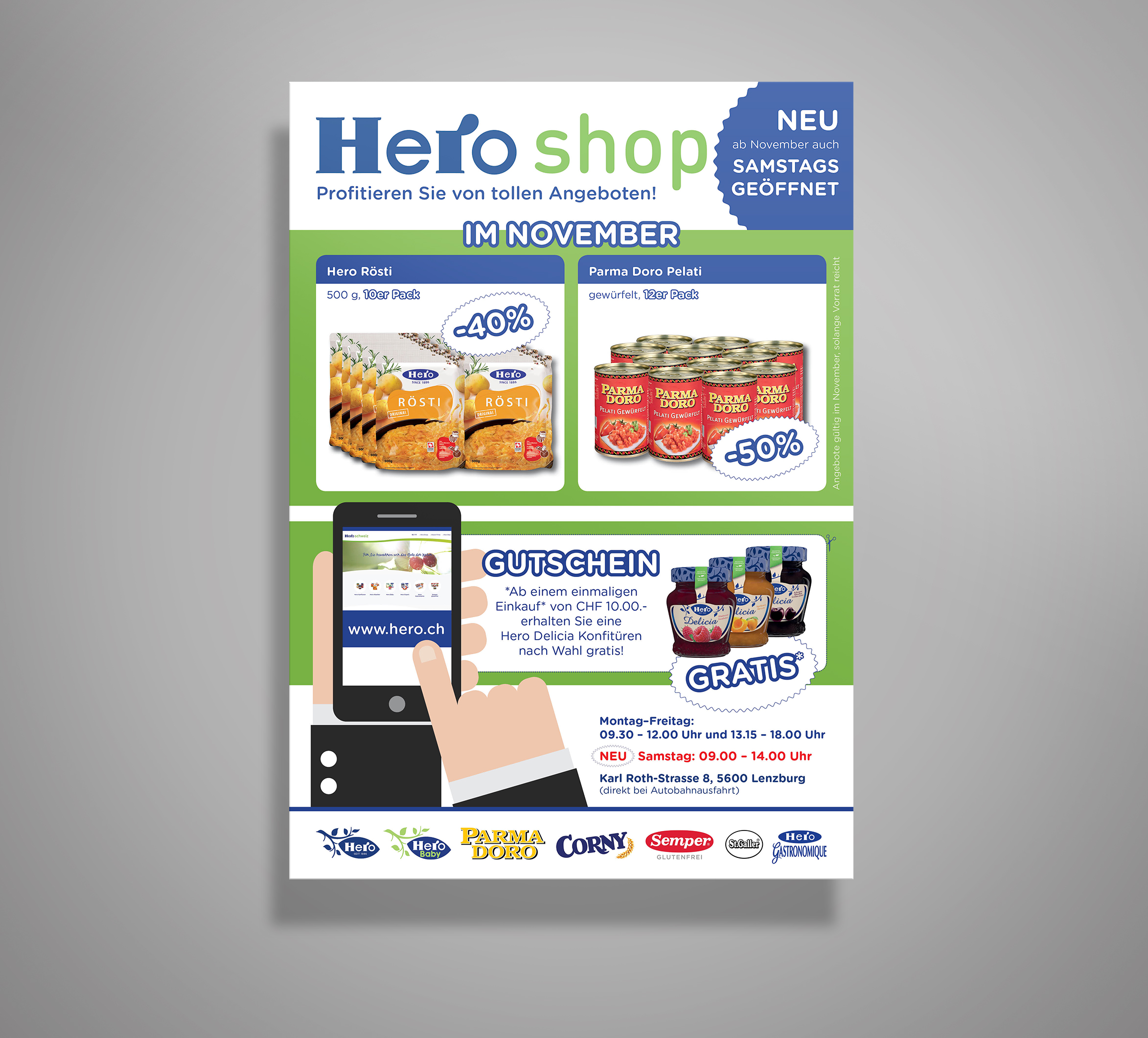 · Zudem soll der Link auf die Homepage www.hero.ch ebenfalls erscheinen.