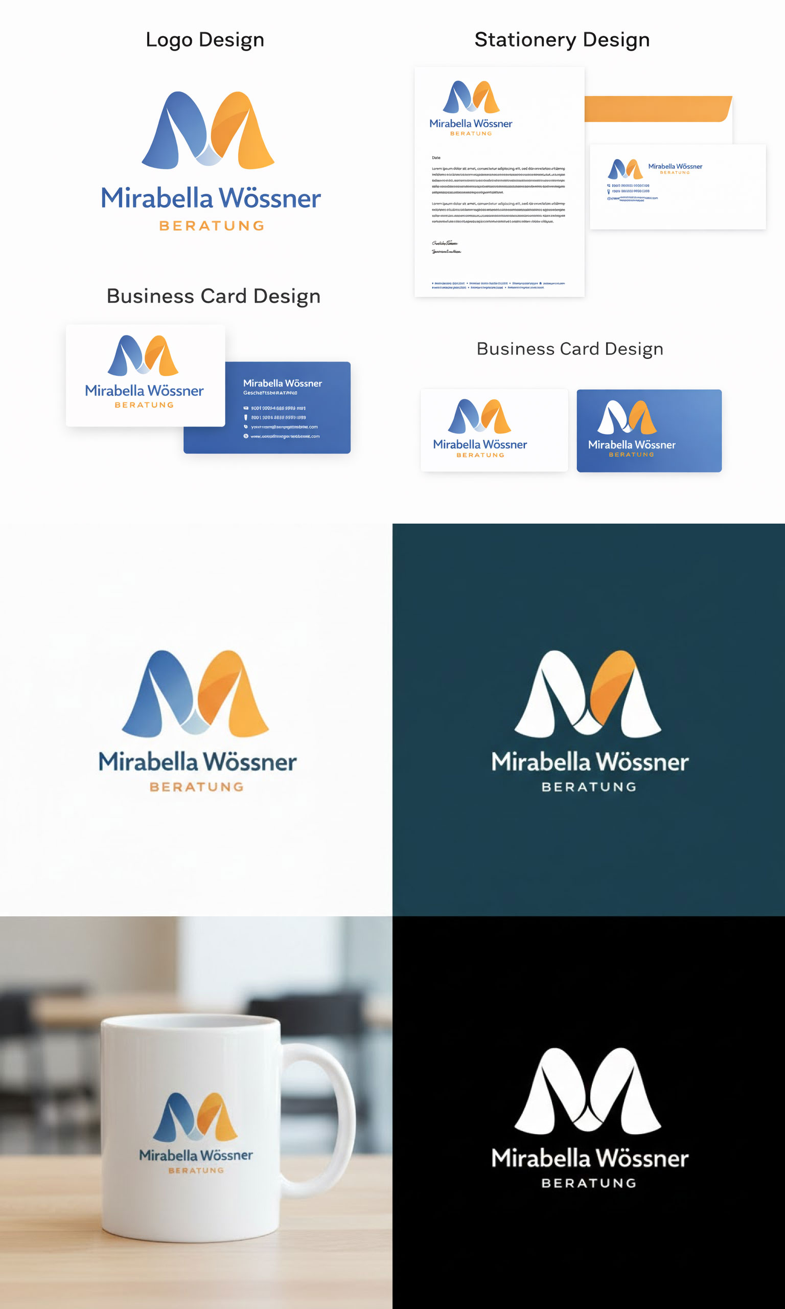 Das Design soll klar strukturiert, modern und professionell sein. Kommuniziert werden sollen Vertrauen, Kompetenz, partnerschaftliche Zusammenarbeit, Individualität und Verlässlichkeit. Bestehend aus einem ansprechendem Logo mit Wiedererkennungswert, einem Briefpapier für Korrespondenz und Rec..