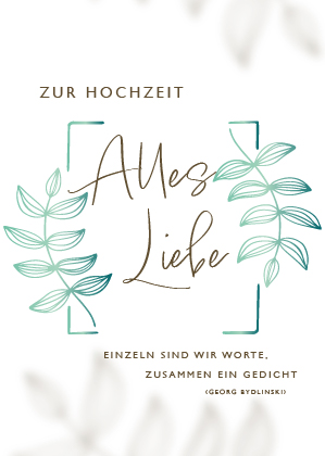 19Wir hätten gerne eine individuelle Einladungskarte. Sie soll etwas besonderes sein, d.h. etwas besonderes ausstrahlen, aber sonst eher schlicht und modern und nicht kitschig! Auf der Vorderseite sollte unser Hochzeitsdatum und unsere Namen stehen ggf. ein Foto von uns. ggf. auch ein Zitat: ..