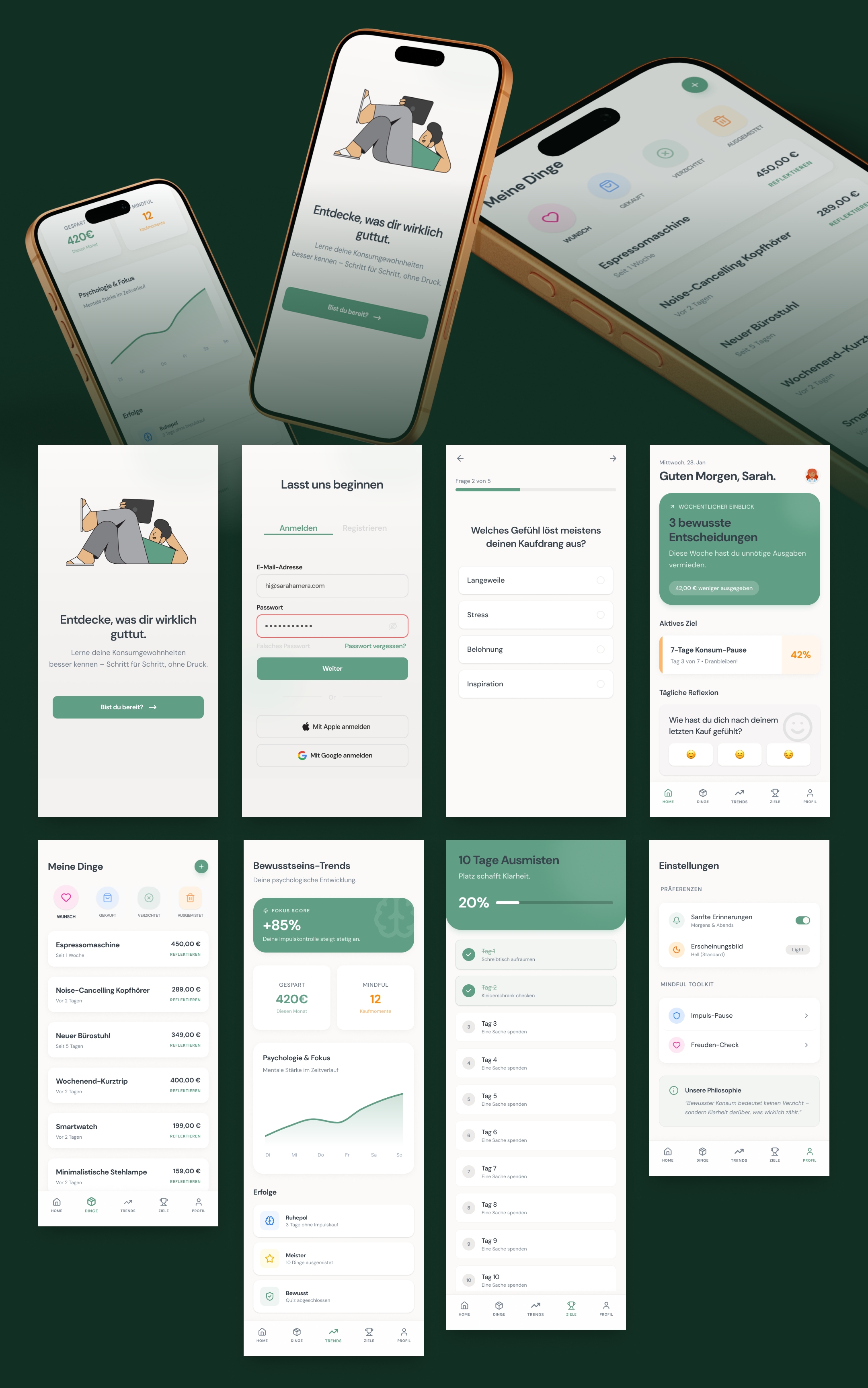 Wir benötigen eine APP mit einem User-Dashboards (Life-Account) in dem Finanz, Karriere und Gesundheitsthemen erkennbar sein sollen. Look and Feel soll seriös, schnörkelos und modern sein.