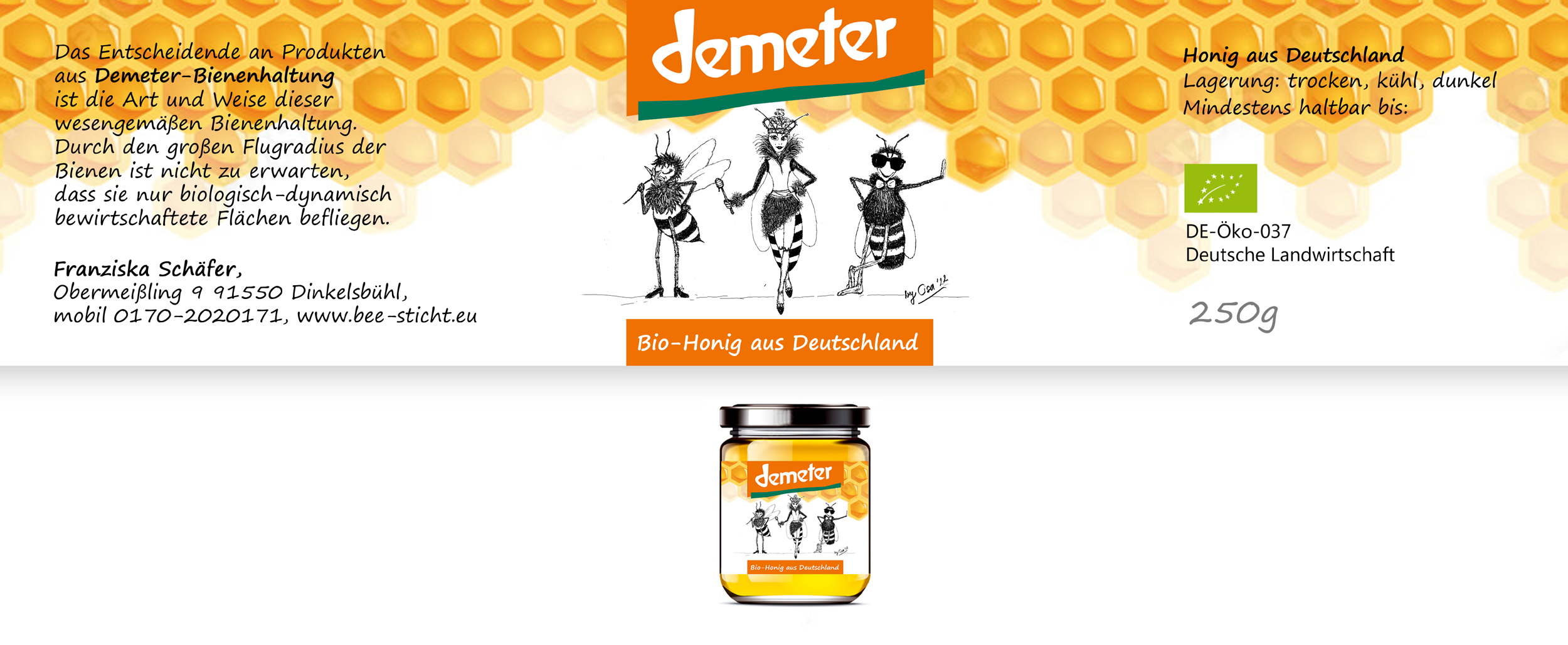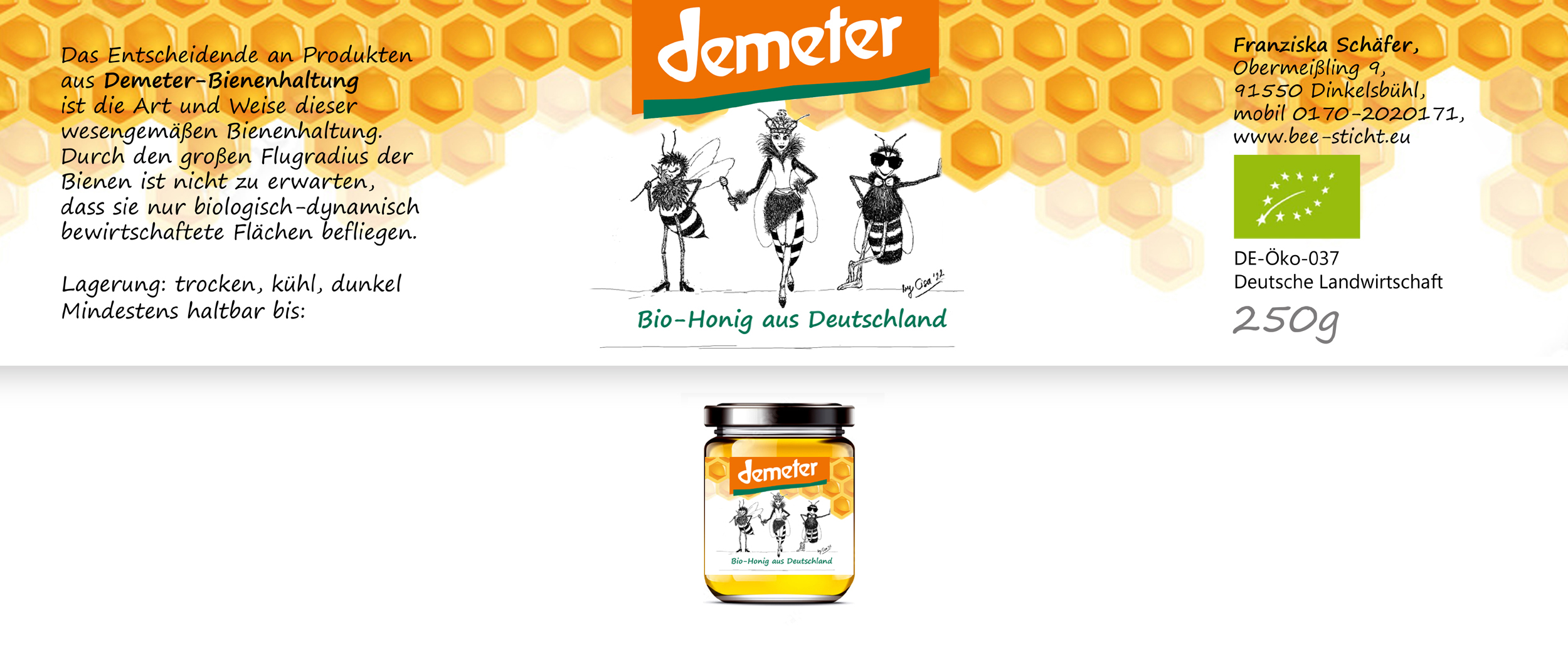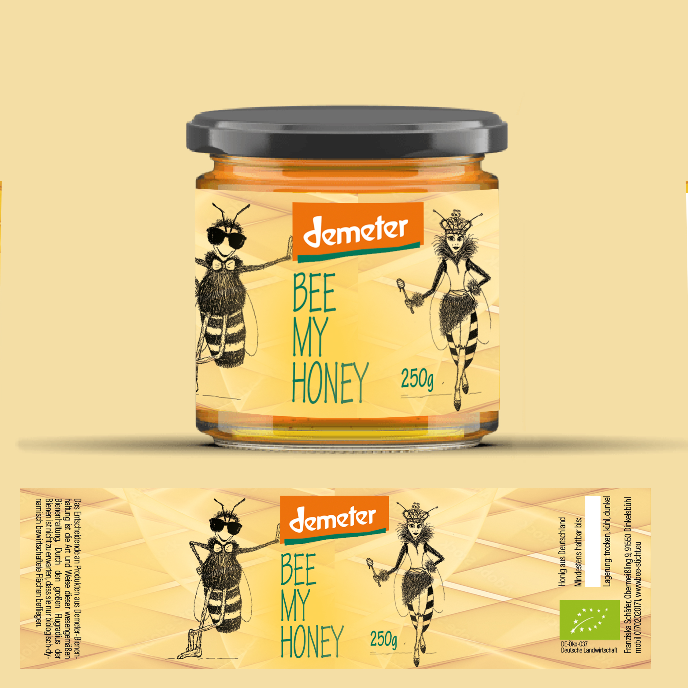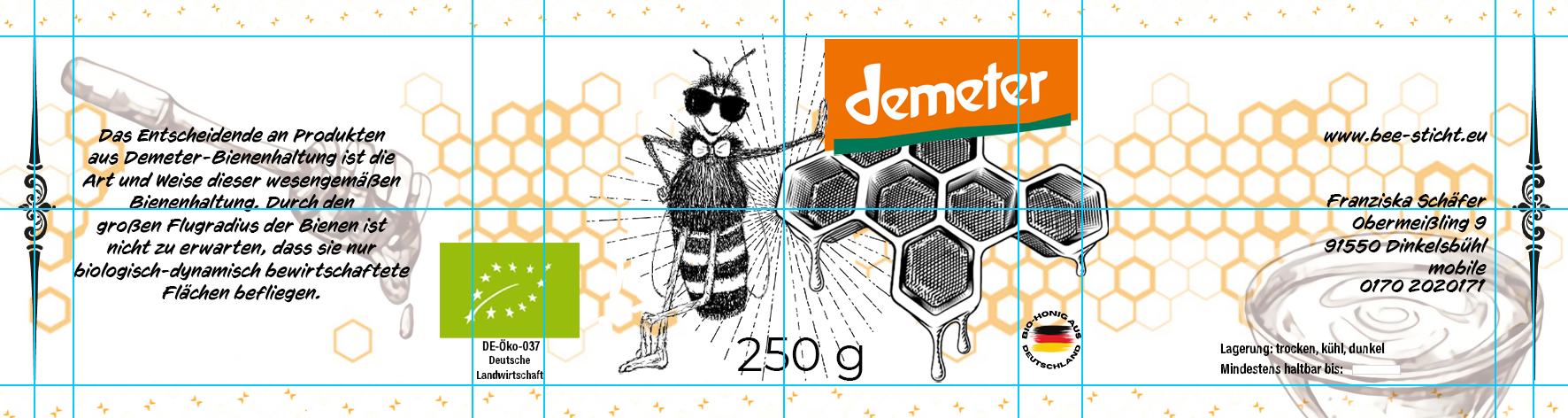 Ich verkaufe Honig. Design soll hip sein. Auf dem Logo soll mein Name meine Anschrift stehen, aber nicht dominant. Es muss ersichtlich sein, dass es Honig ist, der verkauft wird. Ideal wäre, wenn zum Ankreuzen je ein Feld mit der Bezeichnung Waldhonig bzw. Blütenhonig stünde. Ich benötige ei..