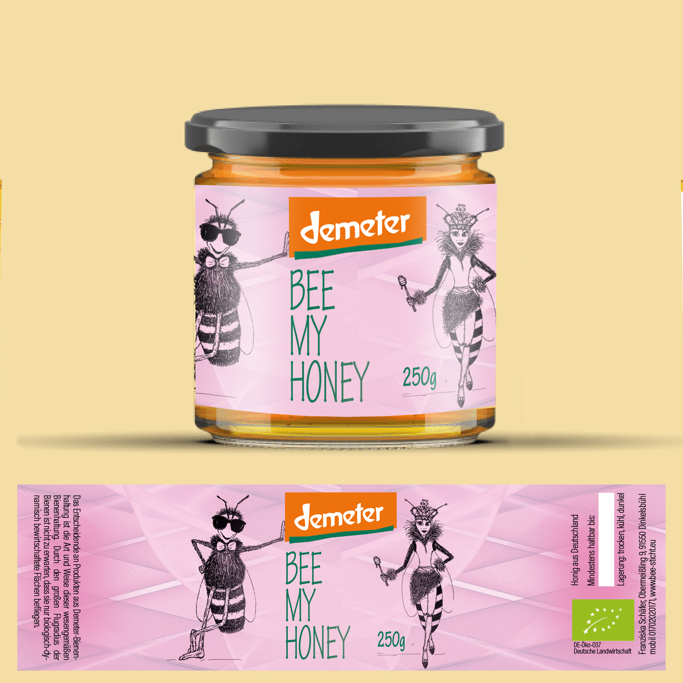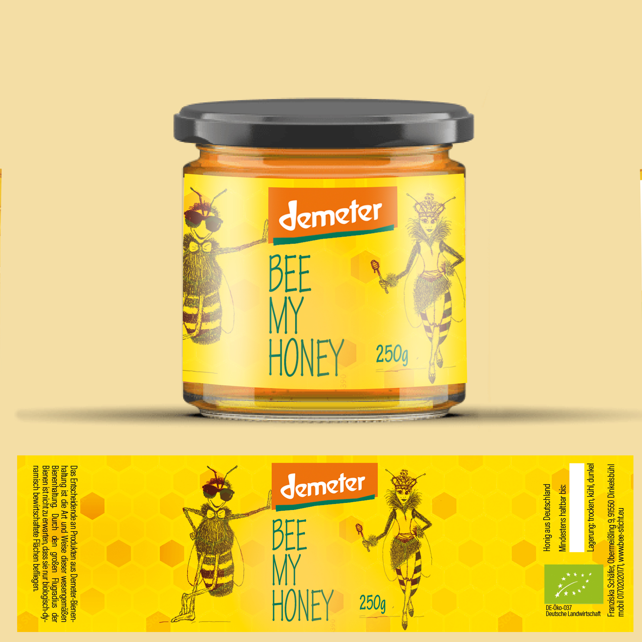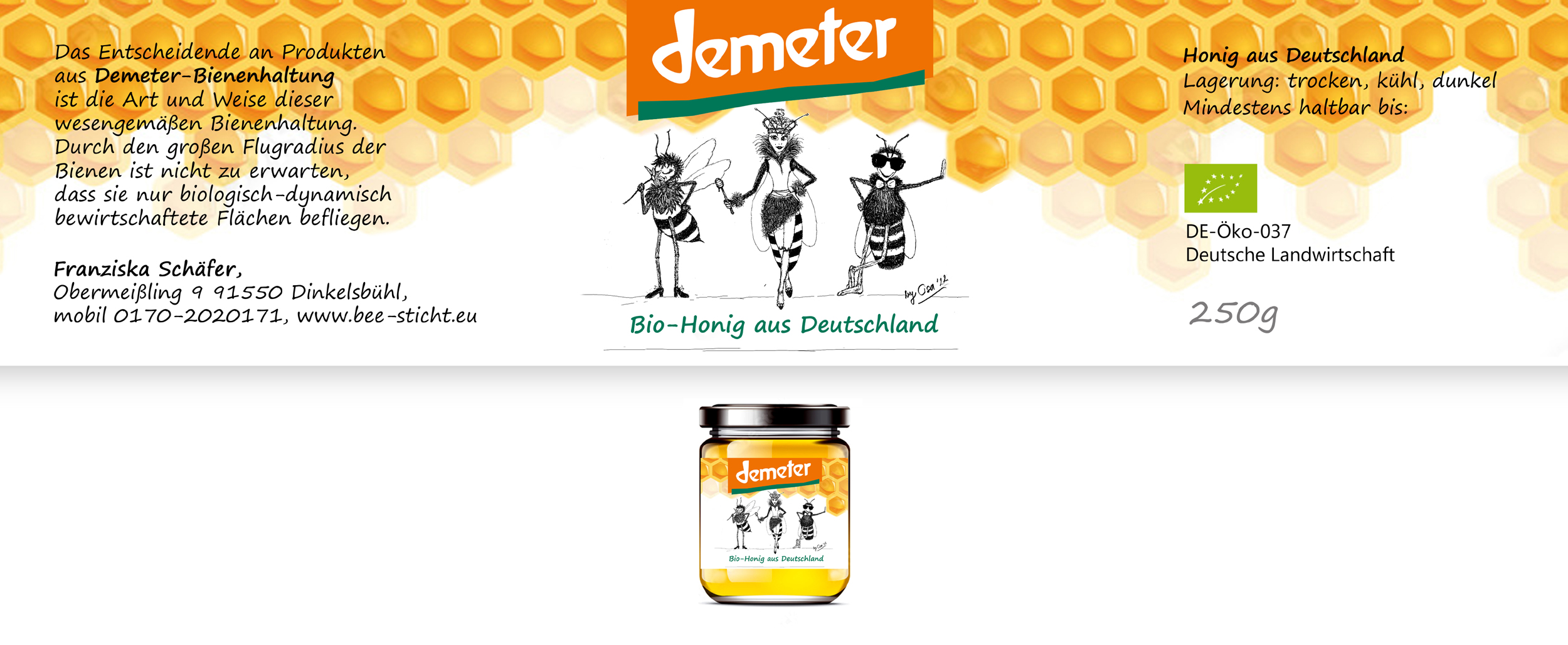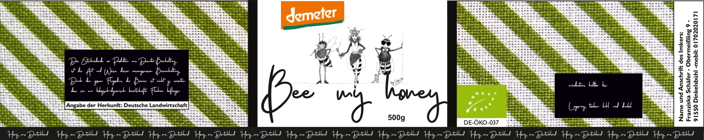 Ich verkaufe Honig. Design soll hip sein. Auf dem Logo soll mein Name meine Anschrift stehen, aber nicht dominant. Es muss ersichtlich sein, dass es Honig ist, der verkauft wird. Ideal wäre, wenn zum Ankreuzen je ein Feld mit der Bezeichnung Waldhonig bzw. Blütenhonig stünde. Ich benötige ei..