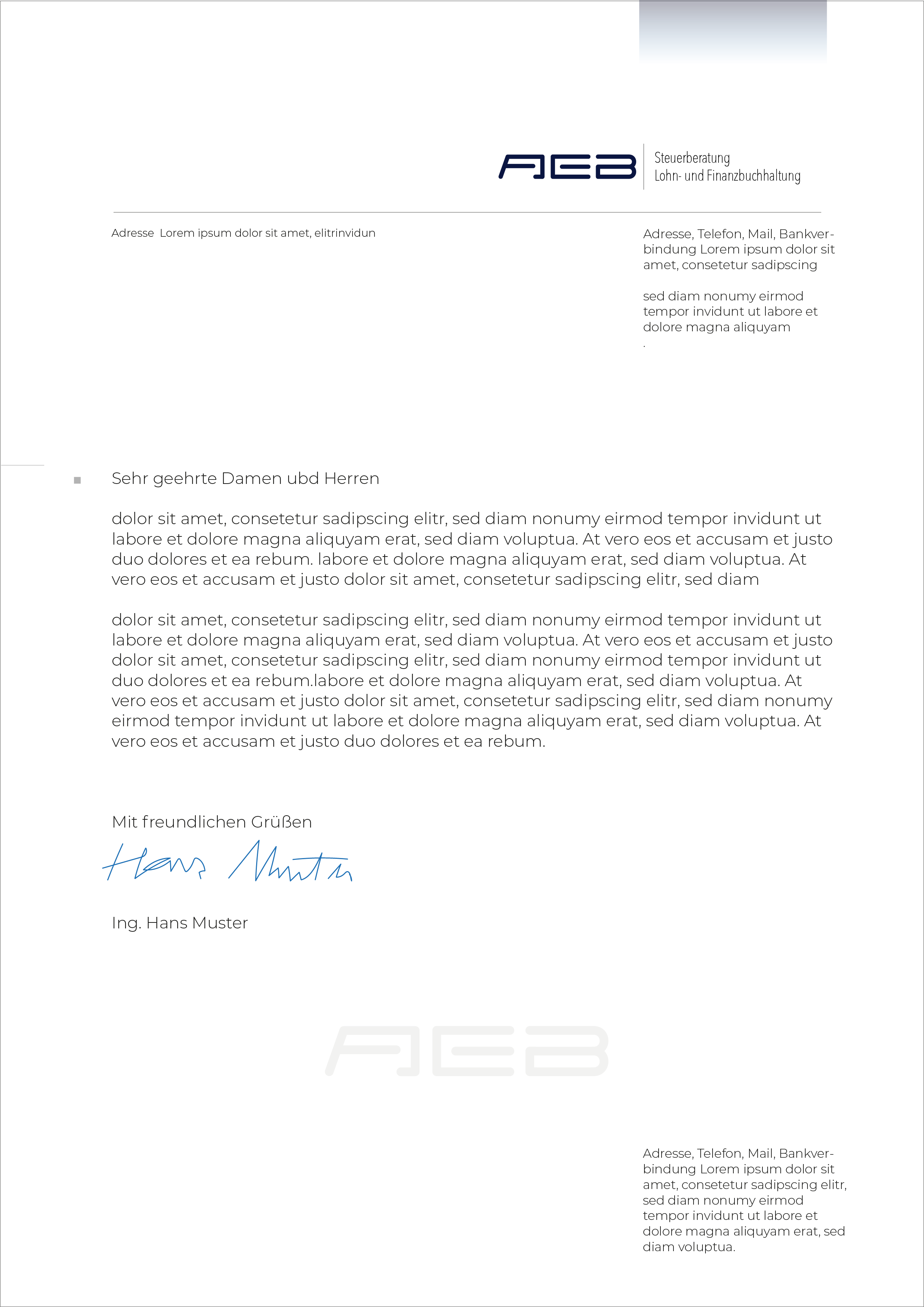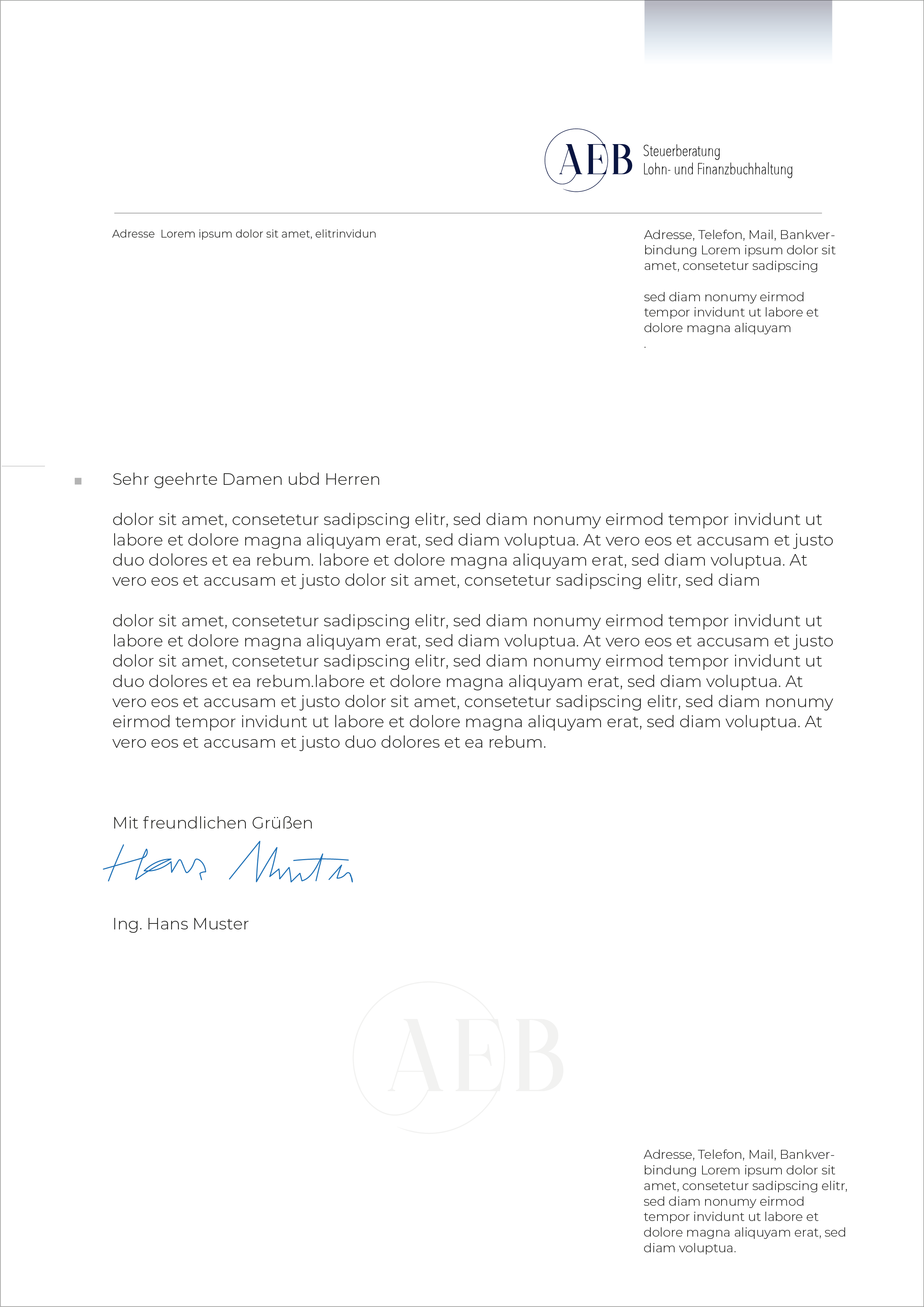 Das Design soll klar strukturiert, modern und professionell sein. Kommuniziert werden sollen Vertrauen, Kompetenz, partnerschaftliche Zusammenarbeit, Individualität und Verlässlichkeit. Bestehend aus einem ansprechendem Logo mit Wiedererkennungswert, einem Briefpapier für Korrespondenz und Rec..
