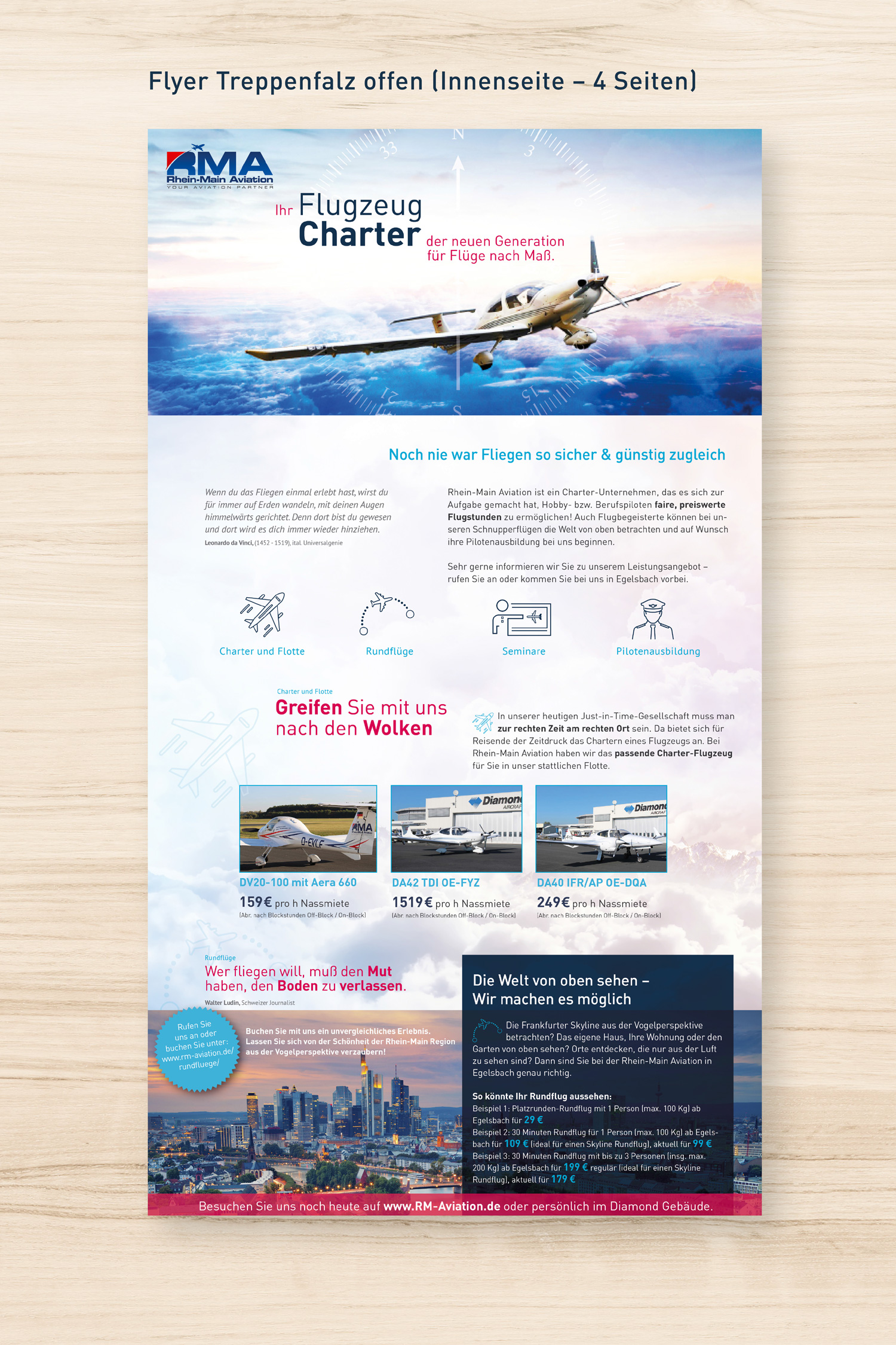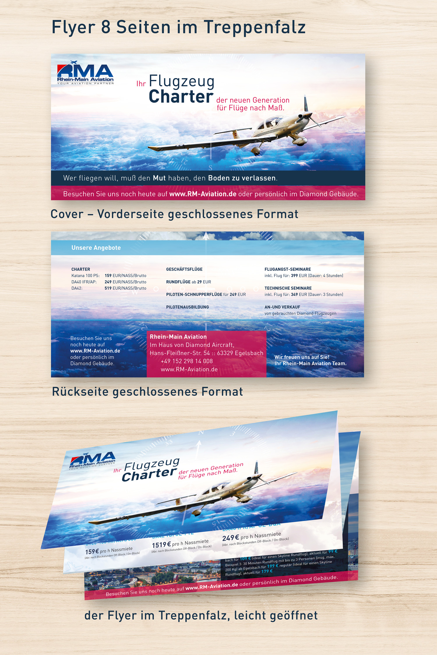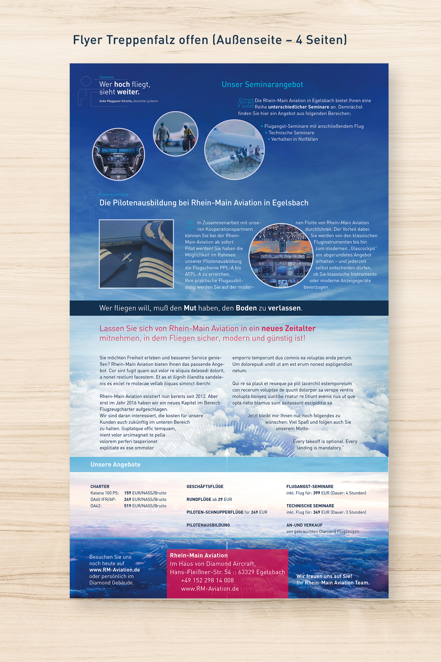 Das Design sollte hochwertig sein, aber dennoch eine jugendliche und frische note besitzen. Der Flyer sollte aus mehreren Seiten bestehen und nachher auf einem hochwertigen Papier gedruckt werden.