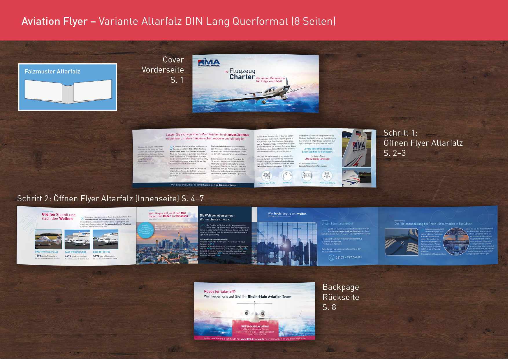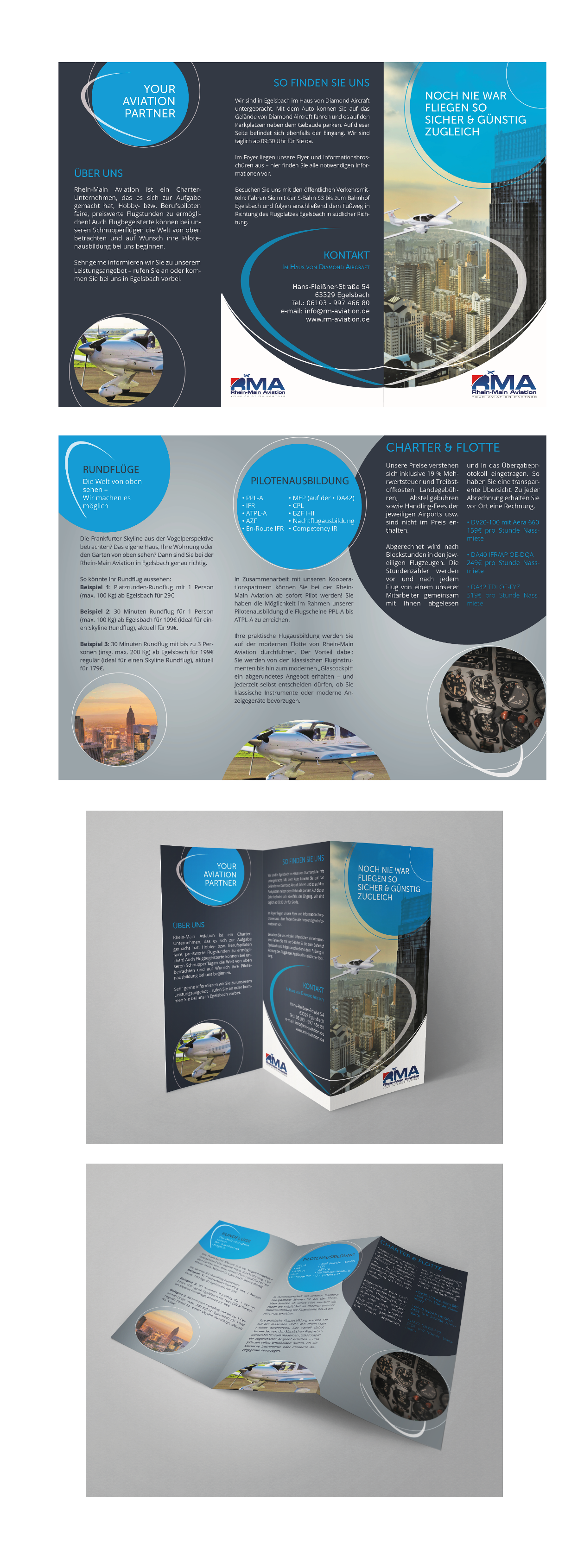 - Blau und Grüntöne mit passenden Ergänzungen - Der Flyer soll ein 6-seitiger Wickelfalz sein - Innen sollte Platz für Text sein