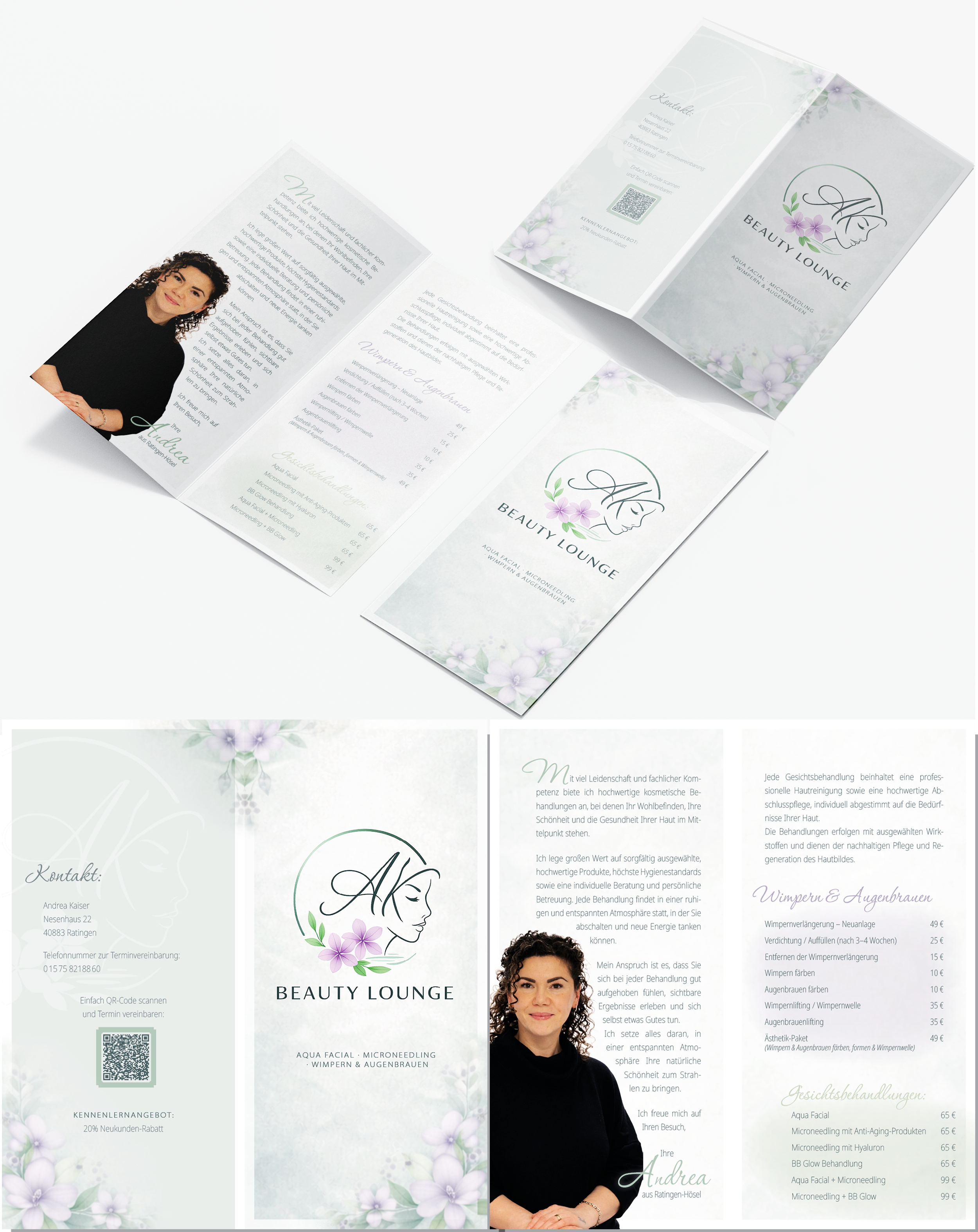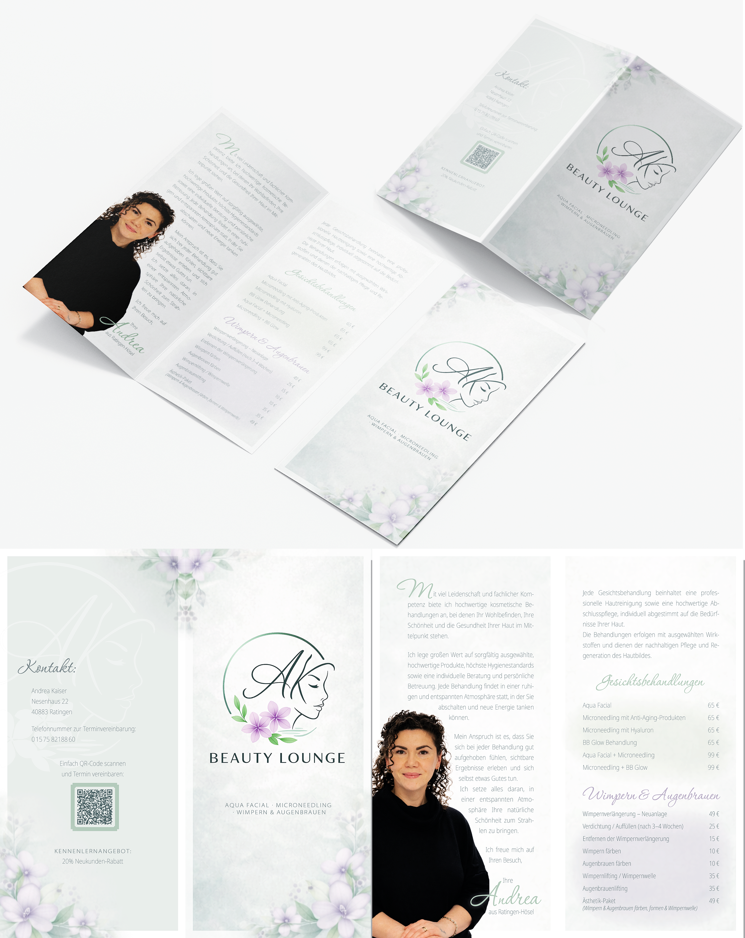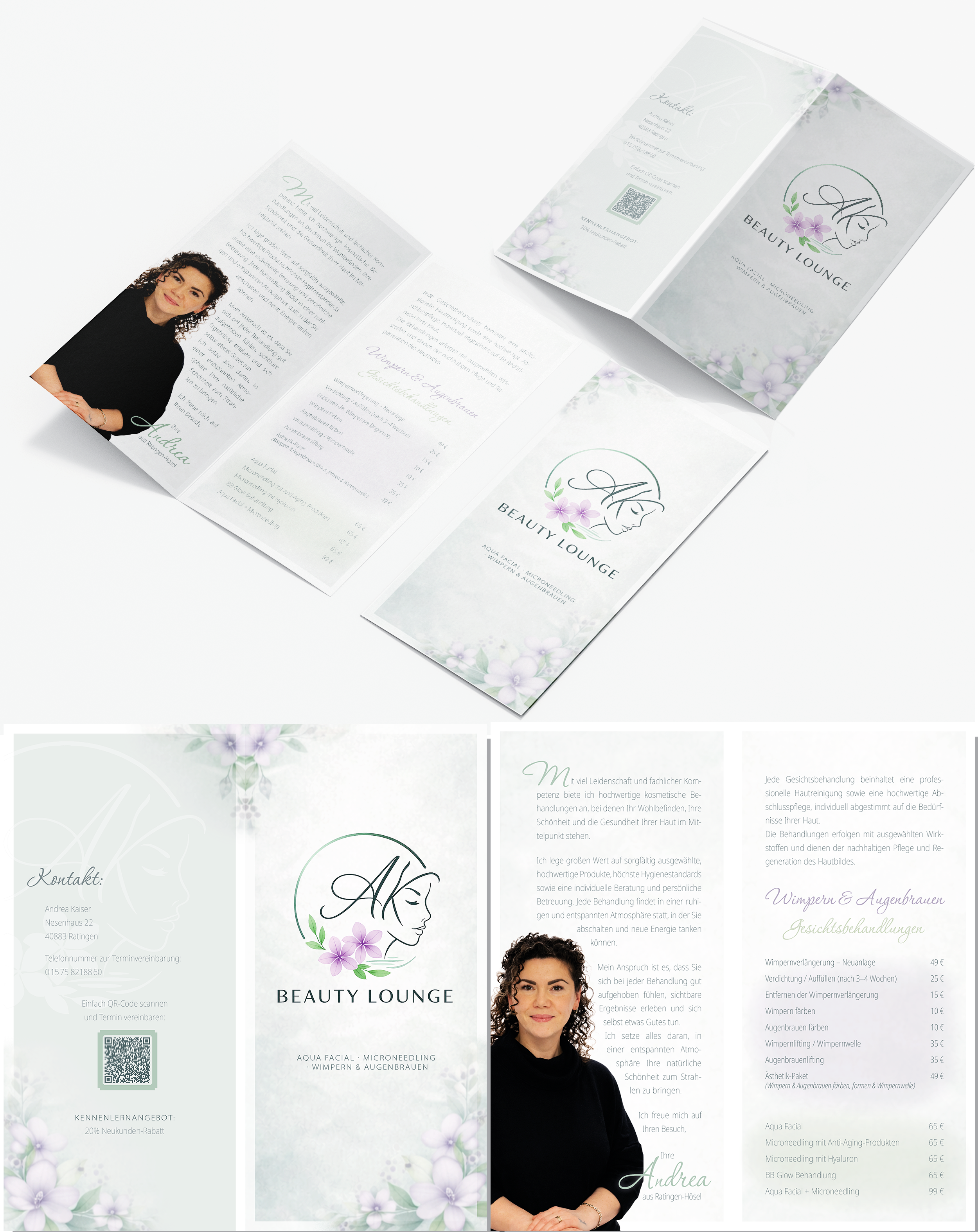 - Blau und Grüntöne mit passenden Ergänzungen - Der Flyer soll ein 6-seitiger Wickelfalz sein - Innen sollte Platz für Text sein