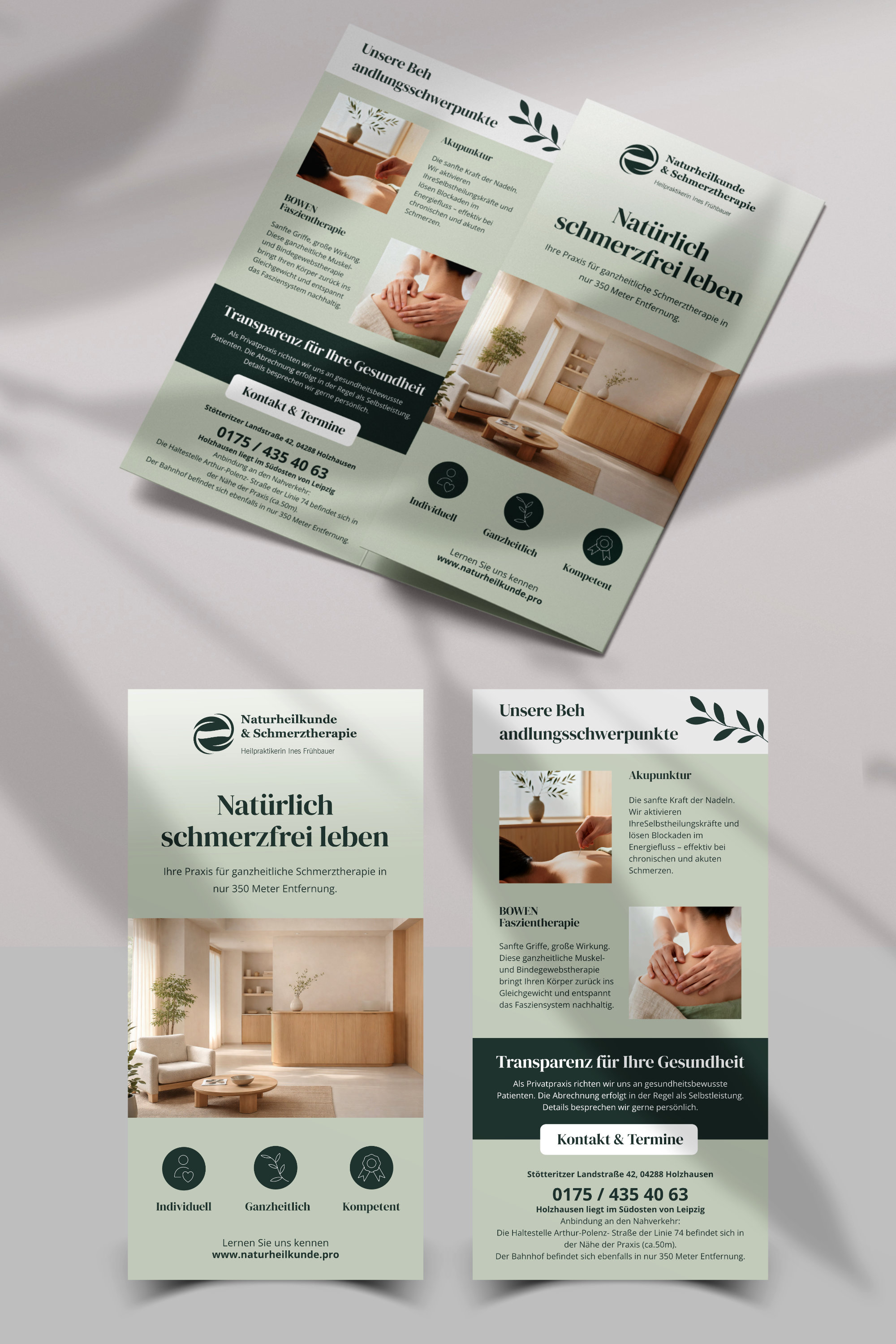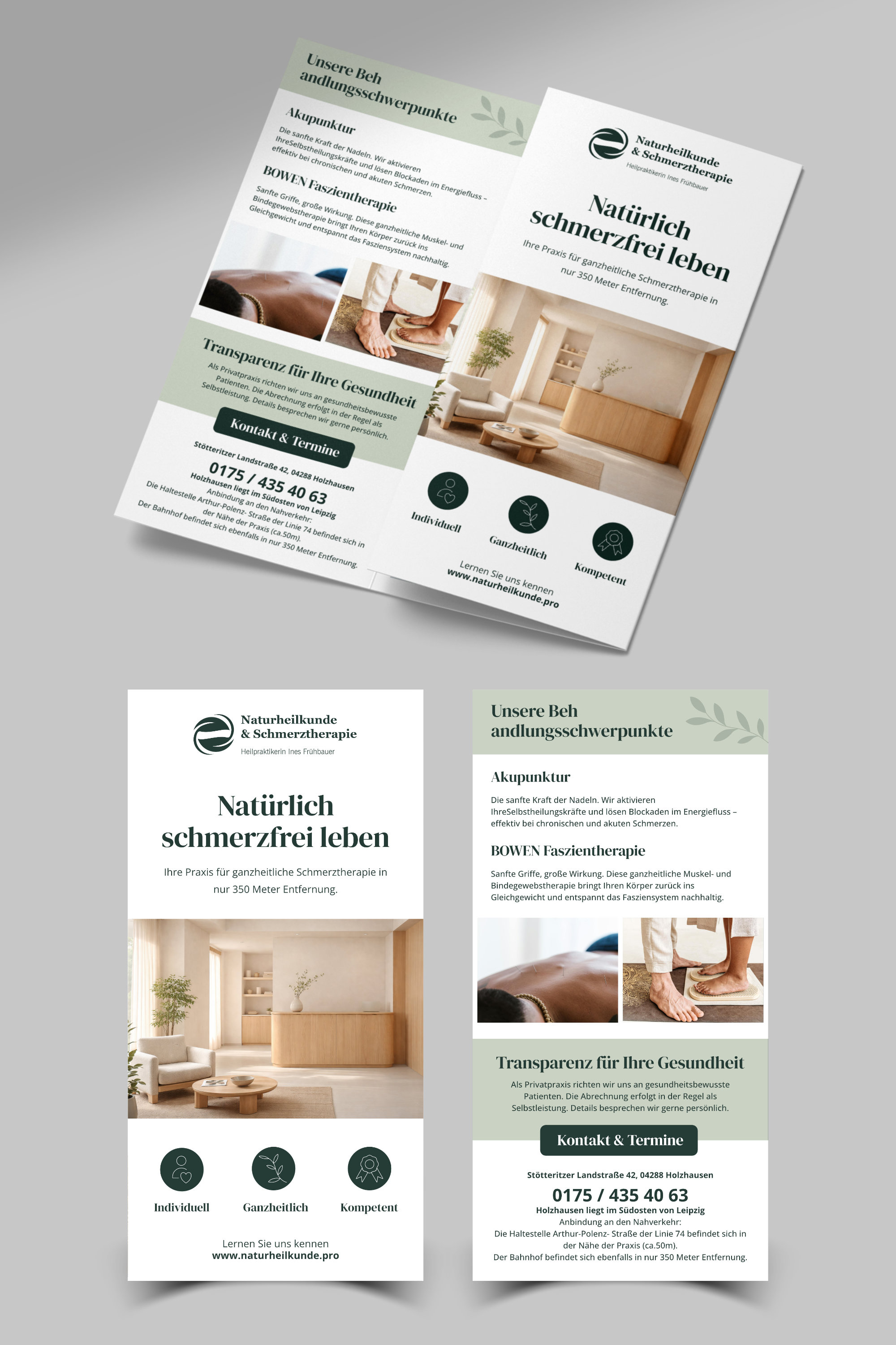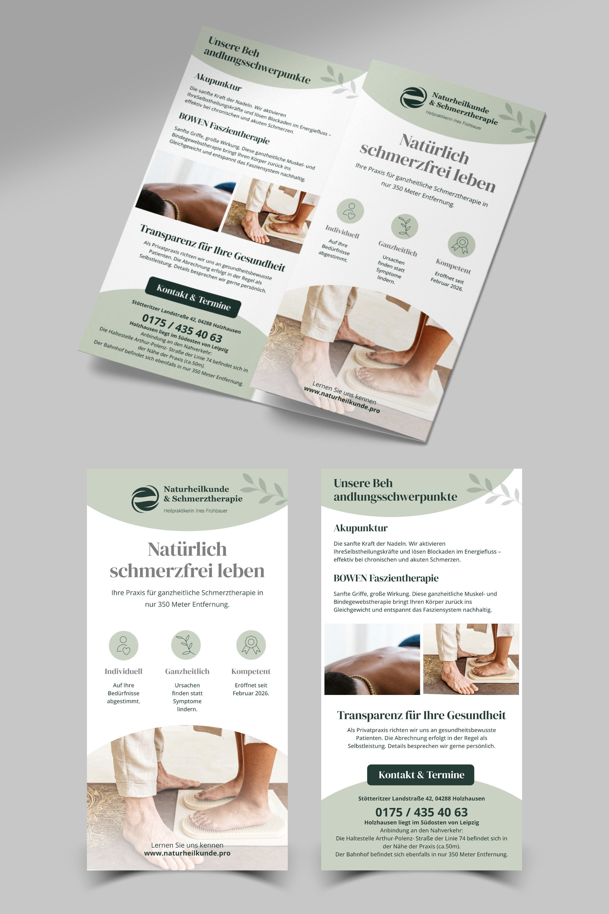 - Blau und Grüntöne mit passenden Ergänzungen - Der Flyer soll ein 6-seitiger Wickelfalz sein - Innen sollte Platz für Text sein