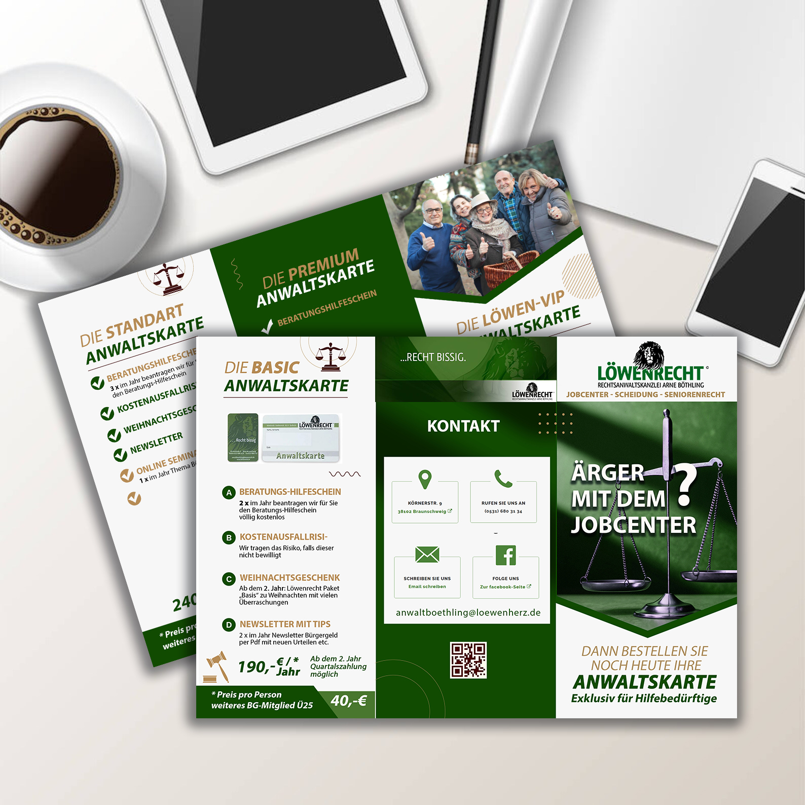 - Blau und Grüntöne mit passenden Ergänzungen - Der Flyer soll ein 6-seitiger Wickelfalz sein - Innen sollte Platz für Text sein